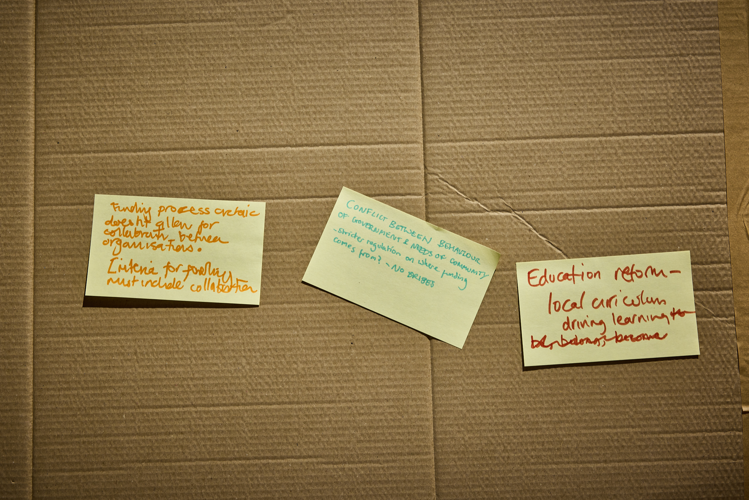 - Funding process archaic doesn’t allow for collaboration between organisations. Criteria for funding must include collaboration.