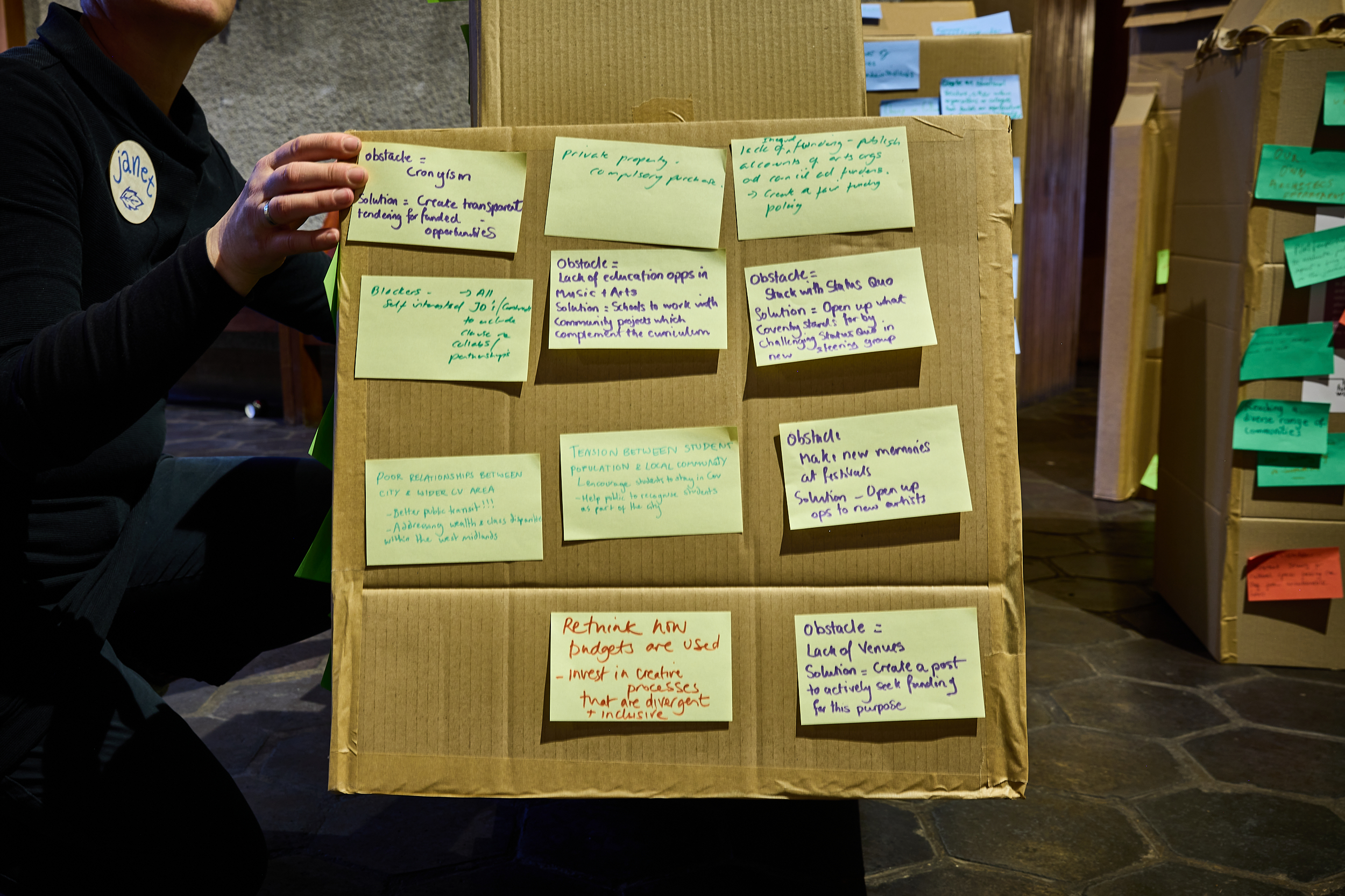 Solution – artist infiltration across all council departments. - Excluded/marginalised – more money for people/organisations who strive for equality and inclusion.
